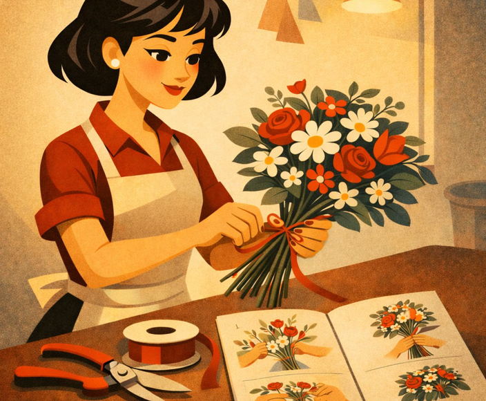 В какой-то момент новичок начинает замечать, что отдельные букеты получаются лучше других, хотя набор цветов похож. Это ощущение часто воспринимается как случайная удача. На самом деле это первые признаки формирования профессионального взгляда. Человек начинает неосознанно учитывать форму, вес и взаимодействие элементов.