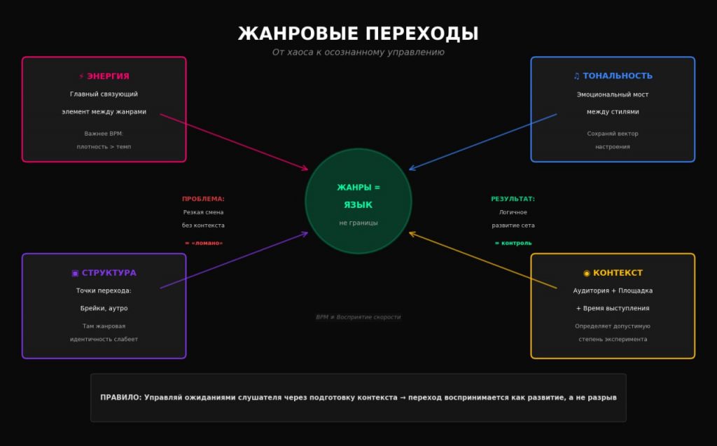 Переходы между жанрами — это не риск и не хаос, а осознанный инструмент управления музыкальным процессом.