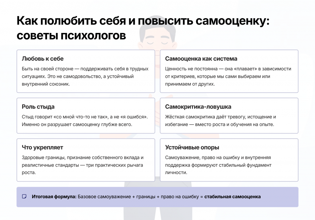 - Как устроена самооценка: почему она «плавает» и что её реально стабилизирует