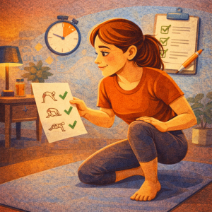 В моменты паники человеку трудно «начать заниматься». Поэтому полезно иметь короткий ритуал, который вы не обсуждаете с собой. Ритуал — это последовательность из нескольких простых шагов: найти опору, сделать несколько длинных выдохов, выполнить несколько мягких движений, завершить спокойным положением. Смысл ритуала в том, что он предсказуем. Предсказуемость — антидот неопределённости, а паника как раз питается неопределённостью.