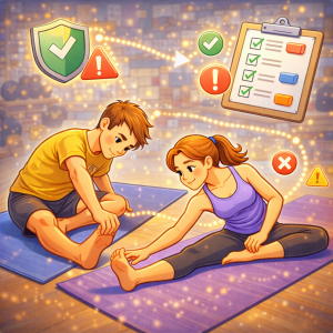 Когда тревога высокая, тело часто либо зажато, либо дрожит. В таком состоянии глубокая растяжка может быть не лучшим выбором: она требует расслабления, а нервная система ещё не готова. Кроме того, растяжка в тревоге легко становится «сбросом напряжения через боль», что потом повышает возбуждение. Поэтому при панике лучше работают мягкие, медленные движения: плавные повороты, мягкое раскрытие грудной клетки, небольшие наклоны в малой амплитуде, движения плечами и лопатками. Их цель — вернуть телу ощущение управляемости.